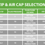 ** Depending on coating viscosity and the amount of solids you may find situations in which the suggested Aircap selection may vary. **